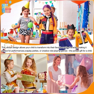 Inspiré par le phénomène mondial « KPop Demon Hunters », ce costume de cosplay pour filles permet aux jeunes fans de se glisser dans la peau de leurs héroïnes préférées. Que ce soit pour une fête costumée, un carnaval ou simplement pour le plaisir, ce déguisement est conçu pour refléter l’énergie et le style des membres du groupe Huntr/x.