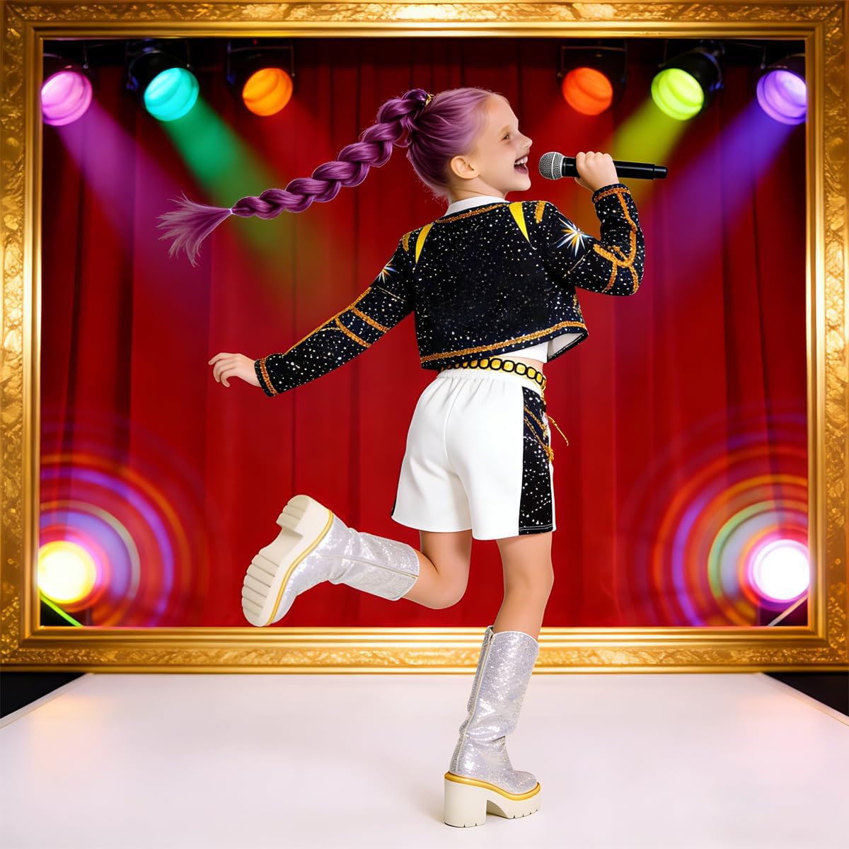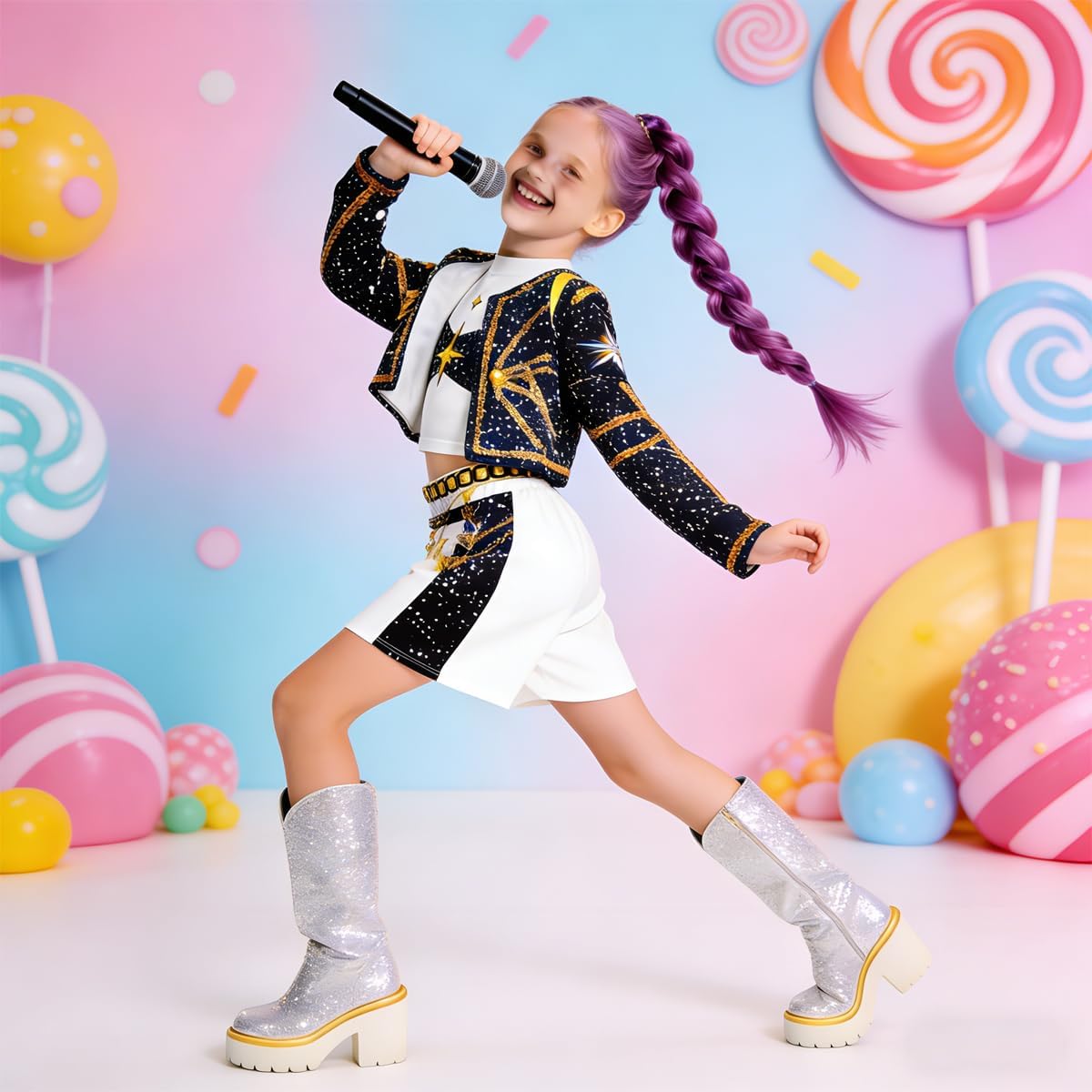 Plongez dans l’univers électrisant de « KPop Demon Hunters » avec le costume de scène de Rumi, la charismatique leader du groupe HUNTR/X. Ce déguisement, inspiré du film à succès de Netflix, permet aux jeunes fans de revêtir la tenue emblématique de leur héroïne préférée lors de carnavals, Halloween, fêtes ou autres occasions spéciales.