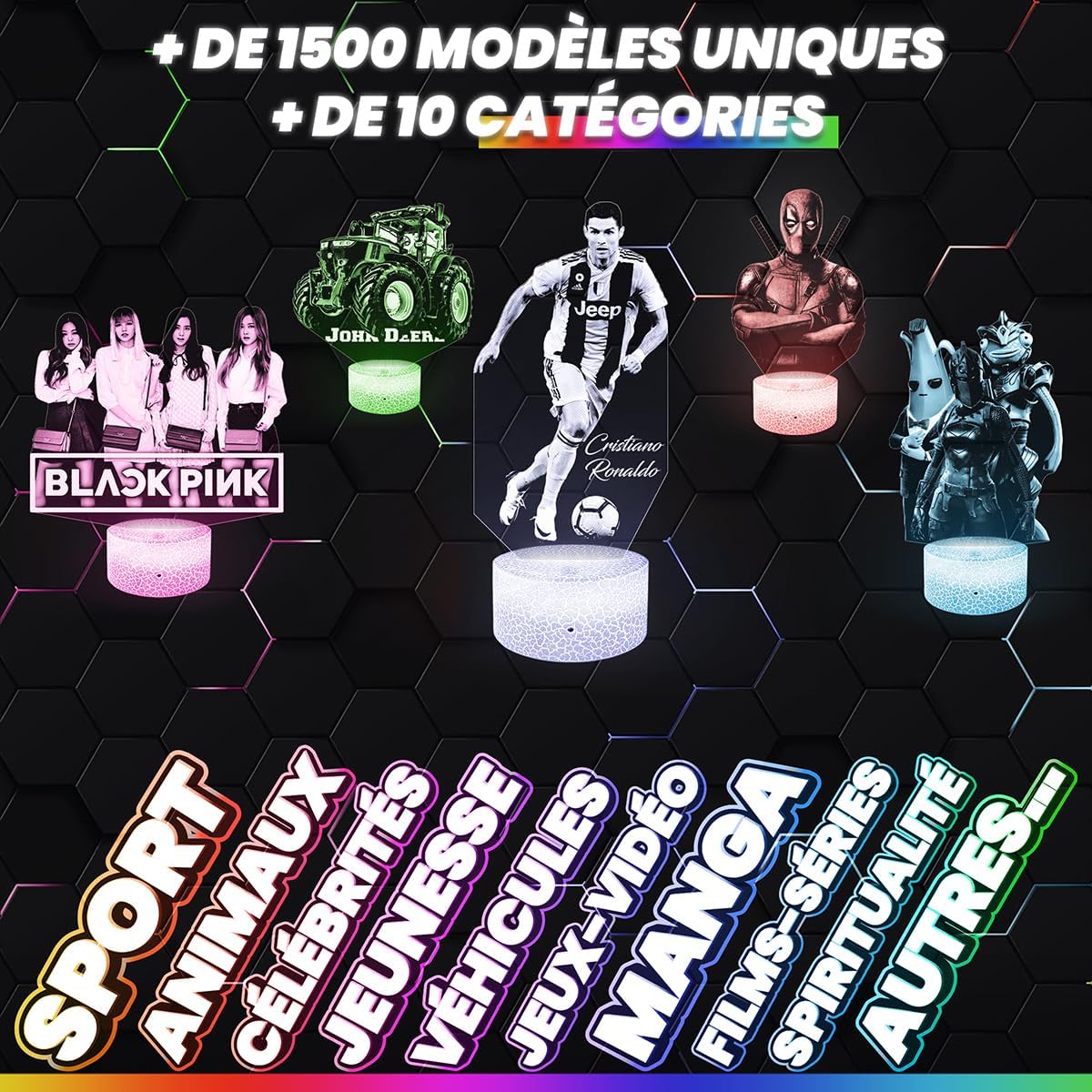 Pour personnaliser votre expérience, plusieurs socles lumineux sont disponibles :