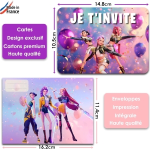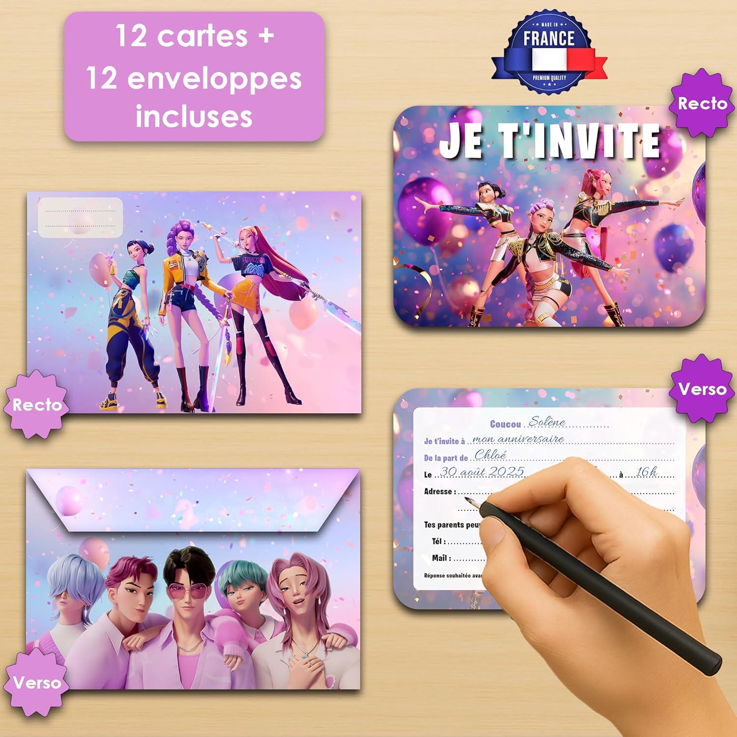 « Ma fille est une grande fan de ‘KPop Demon Hunters’, et ces invitations ont été un véritable succès pour son anniversaire. Les illustrations sont magnifiques, et la qualité du papier est excellente. Je recommande vivement ! » – Sophie L.