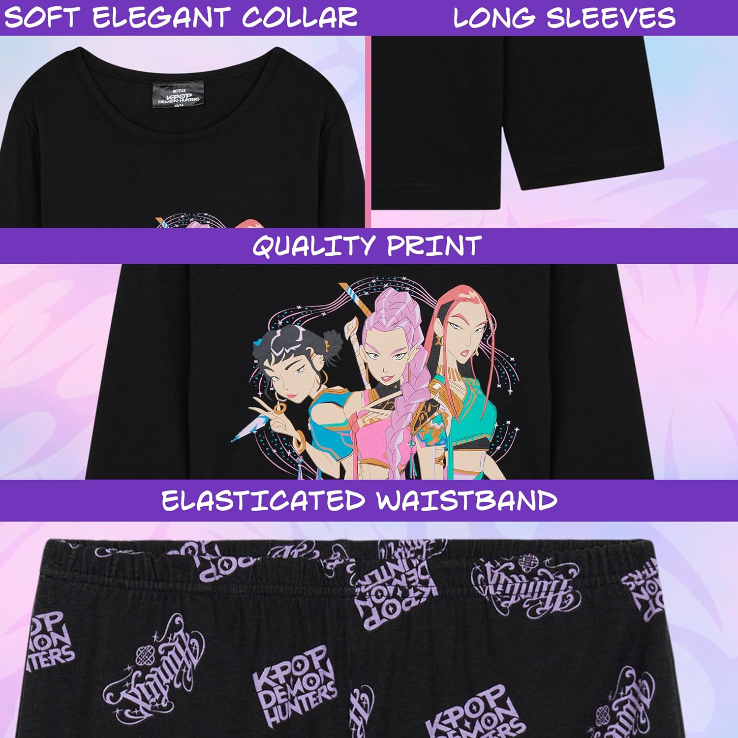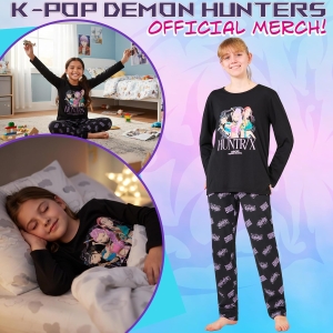 Inspirés par l’univers captivant du film d’animation « KPop Demon Hunters », ces pyjamas pour filles et garçons permettent aux jeunes fans de prolonger l’aventure en incarnant leurs héroïnes préférées, Rumi, Mira et Zoey.