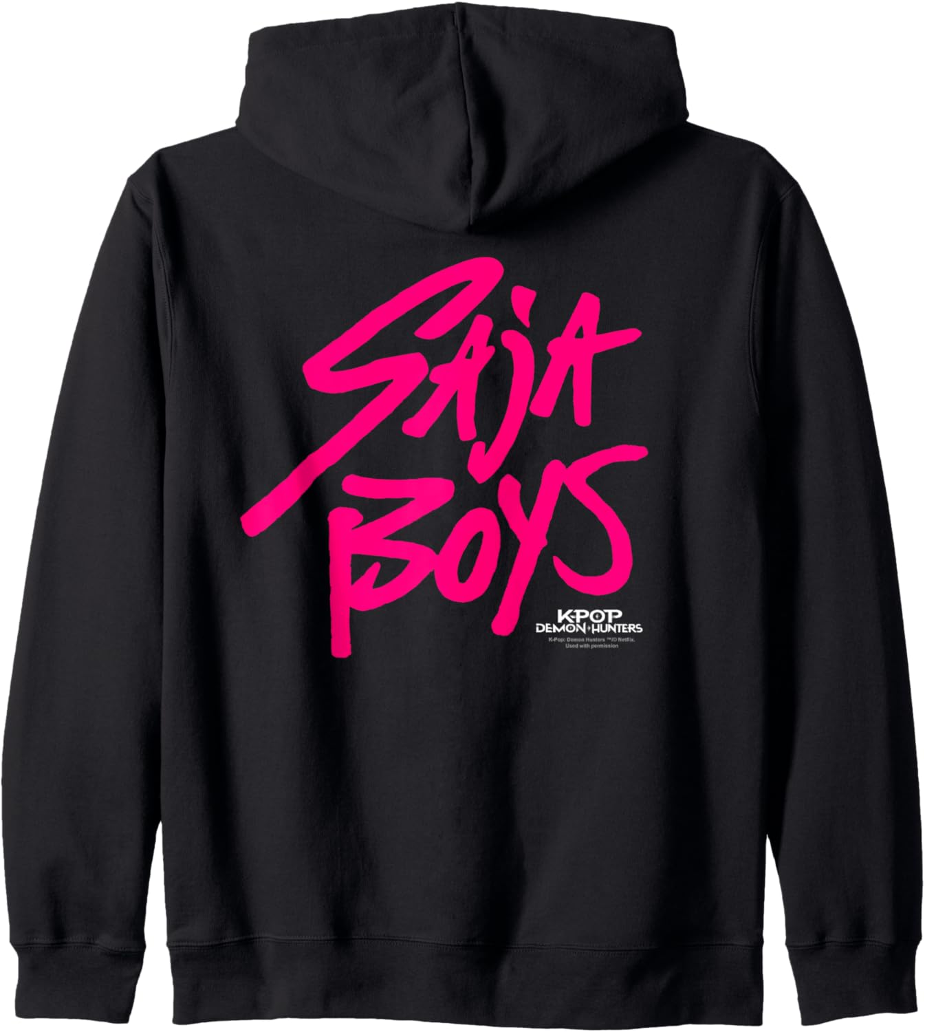 Le sweat à capuche Saja Boys Pink Logo est un excellent choix pour les fans de « KPop Demon Hunters » souhaitant afficher leur passion avec style. Son design fidèle au film, sa qualité de fabrication et son confort en font une pièce incontournable de votre garde-robe. Que vous soyez en train de regarder le film sur Netflix ou de sortir avec des amis, ce hoodie vous accompagnera avec style et confort.