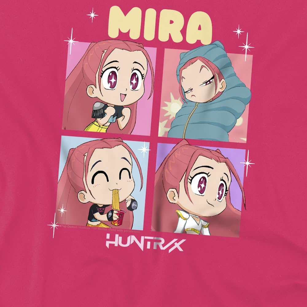 Ce t-shirt présente une illustration chibi de Mira, l’une des membres charismatiques de Huntr/x. Son design adorable capture l’esprit du personnage, offrant aux enfants une manière ludique d’afficher leur passion pour le film.